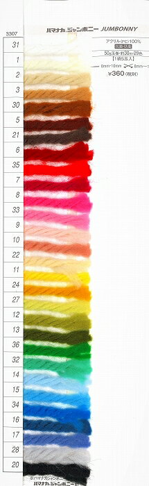 糸:ハマナカ ジャンボニー 8色各1玉 計8玉 (アクリル 100%) 編み図(F-104 ジャンボニー コイル編みのおざぶ) 写真は、A(レトロ):2番7番24番13番16番6番10番12番 B(キュート):1番3番33番11番9番14番32番28番 各1玉を使用しています ☆