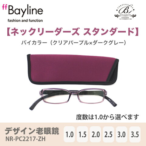 老眼鏡 おしゃれ 男女兼用 軽量 ネックリーダーズ 首かけ ブルーライトカット 眼鏡ケース付き バイカラー(クリアパープル×ダークグレー) 度数 1.0 1.5 2.0 2.5 3.0 3.5 ブランド Bayline ベイライン